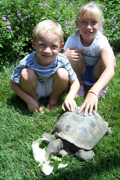 He was the easiest pet ever. We didn’t have to do anything to care for him. He took care of all of his own needs. He lived in our backyard. He ate the grass and leaves and got water from the sprinklers and rain. He dug a hole in our flowerbed (where he slept) and he even hibernated for months at a time during the winters.